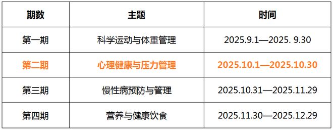 第二期主题[心理健康与压力管理]于10月1日正式开启!本期特别降低答题难度——